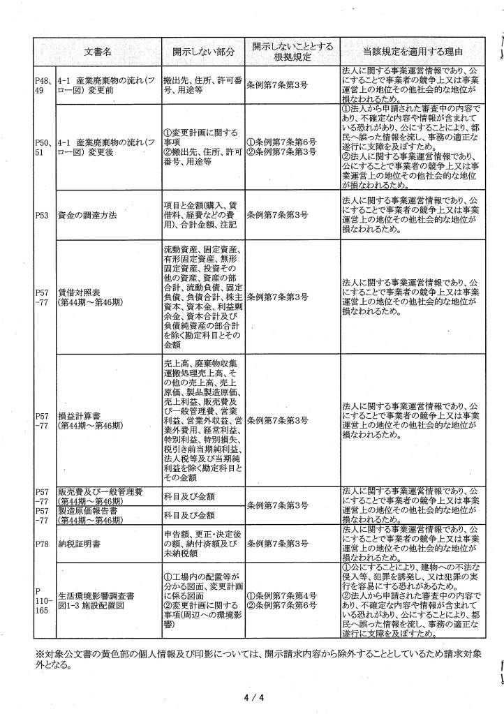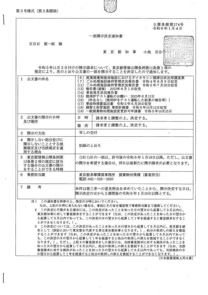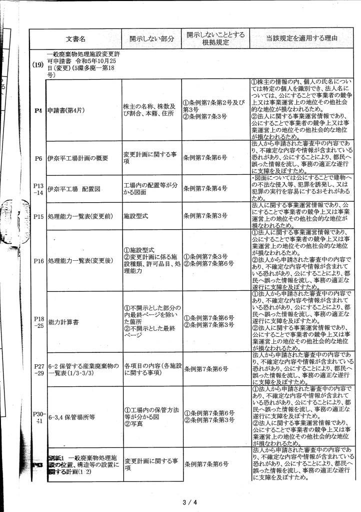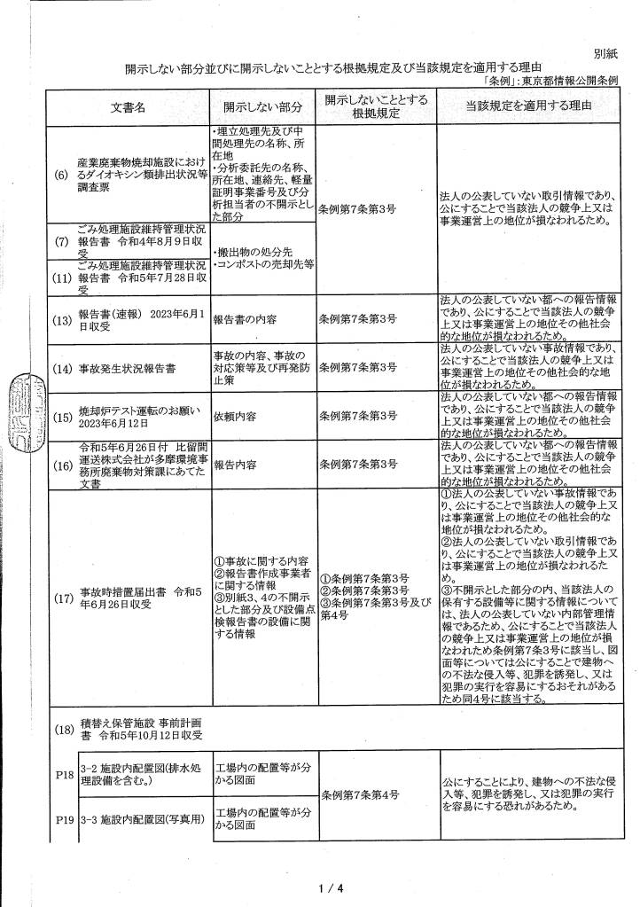比留間運送 情報公開不開示理由書 令和6年1月
