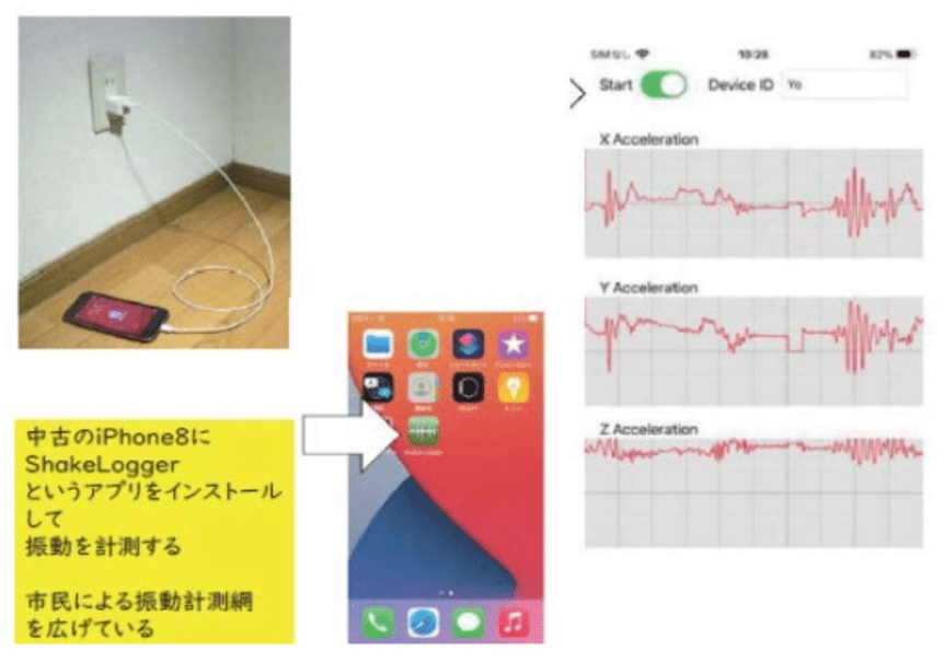【参考】市民科学研究室のHPより、中古iPhone8を用いた振動計測について