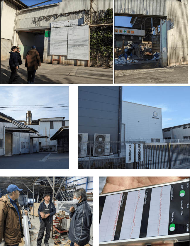 12月9日(土)、市民科学研究室の上田昌文代表理事のご協力を得て、比留間運送㈱伊奈平工場の操業によって発生する大振動の測定を行うための準備作業を行ないました。