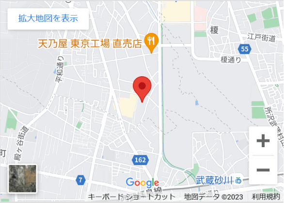 午後1時、玉川上水駅に藤原、天目石要一郎武蔵村山市議会議員、高橋玄監督が集合し、天目石さんの車で武蔵村山市伊奈平3-27-2所在(図1)の有限会社タケローズを訪問。まずは、代表の佐藤健朗さんの案内で作業所内の様子と比留間運送伊奈平廃棄物処理工場の周囲を歩いて周辺の立地状況や環境状況などを目視により調査を行ないました。周囲は工業地帯であり、熱処理事業では70年の歴史を有する多摩冶金㈱の新工場(写真1)や自動車や農機具用の高強度ボルトの製造および販売を行う㈱佐賀鉄工所多摩営業所などの工場の他、比留間運送と市道を挟んでダイエー武蔵村山店や民家などが混在した地域です。